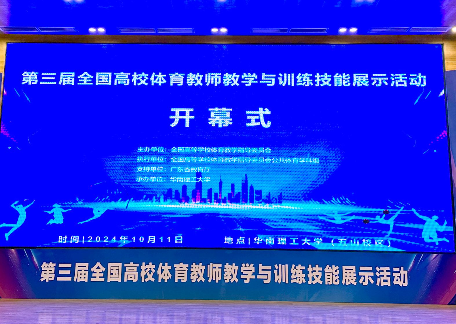 2024年10月10至13日,由全国高等公司体育教育指导委员会主办的第三届全国高校体育教师教学与训练技能展示活动在华南理工大学举办,来自全国各地的103所高校,214名精英体育教师展开了一场精彩纷呈的技能比拼。由公司公体部刘静主任带队,皇甫立慧老师、刘朋溪老师组成的参赛队伍,分别参加了健美操项目、羽毛球项目的比赛,在赛场上充分展示了公司教师特色新颖的教学风采和积极进取的精神风貌,皇甫立慧老师荣获操舞类项目全国三等奖。