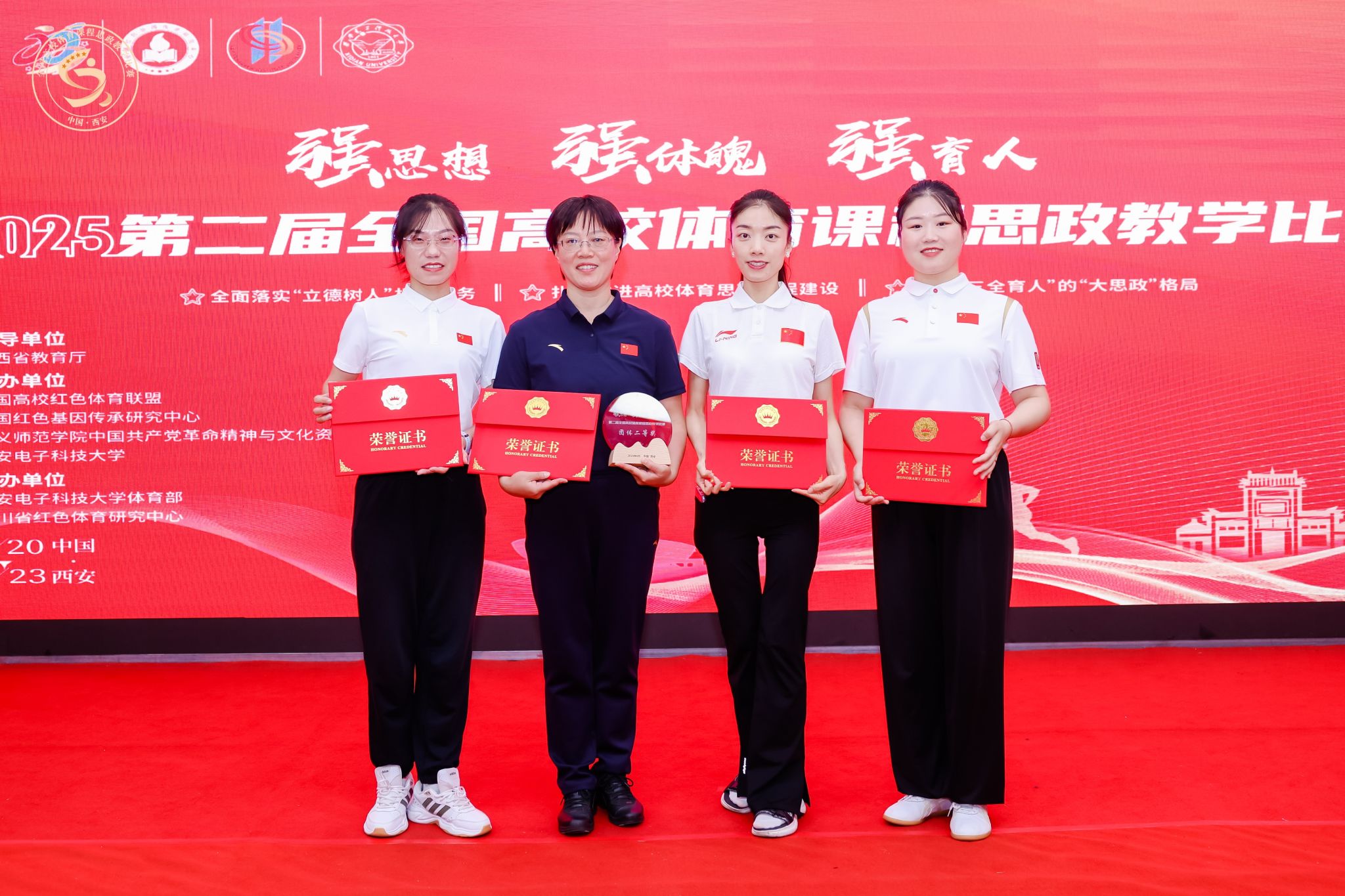 2025 年 6 月 22 日,第二届全国高校体育课程思政教学比赛圆满落幕。beet365教师团队在此次大赛中表现卓越,斩获多项殊荣,充分展现了公司在体育课程思政建设领域的雄厚实力与卓越育人成效。皇甫立慧老师荣获教师术科组一等奖,郑文静老师获得二等奖,薛更新老师获得三等奖。郭丽娟老师凭借出色的指导能力获评“优秀指导教师”。同时,beet365以优异的综合成绩荣获团体二等奖。