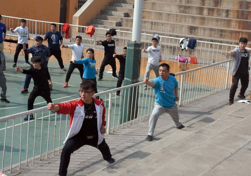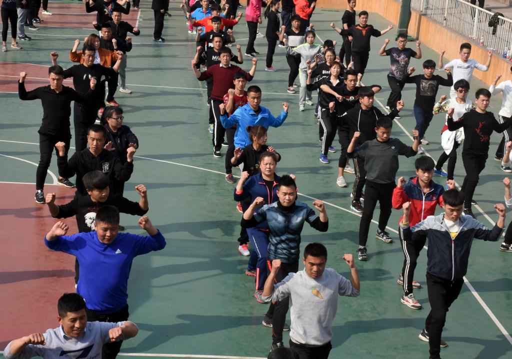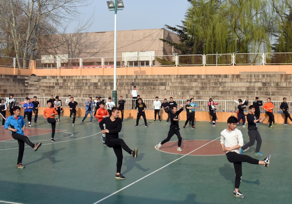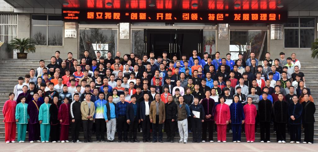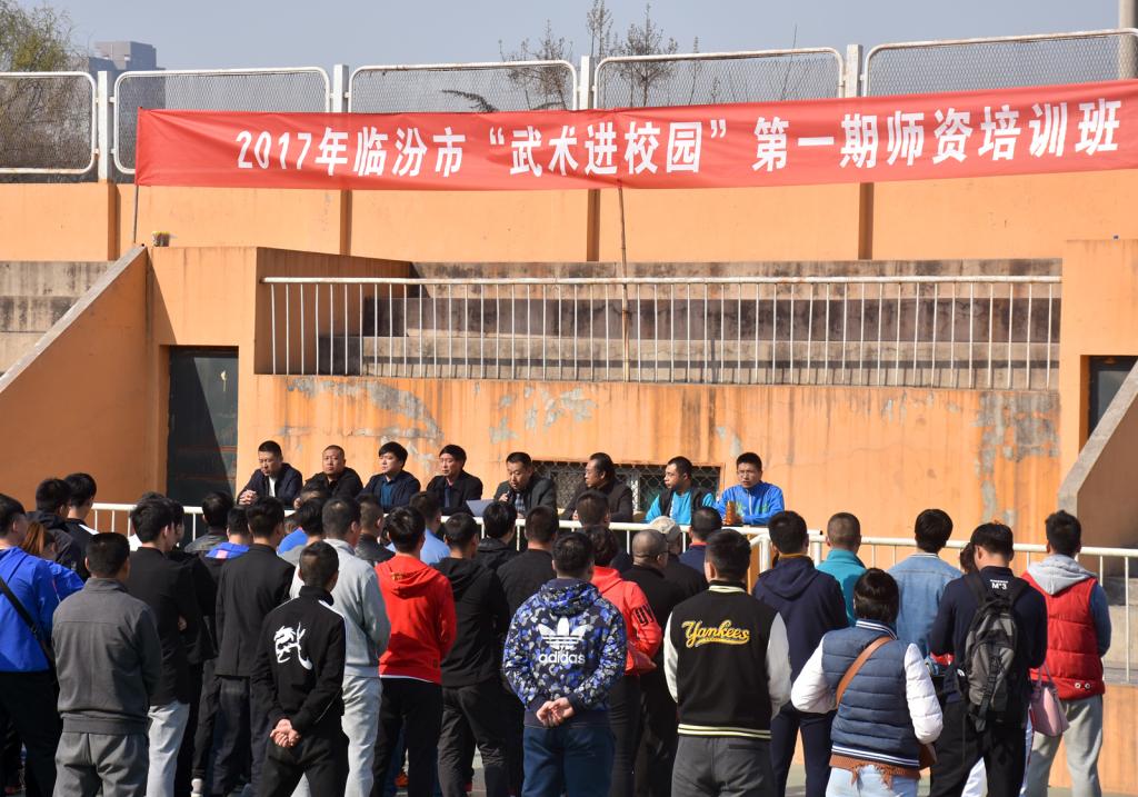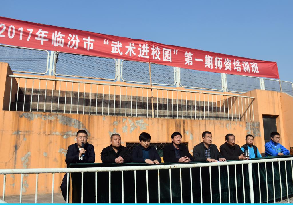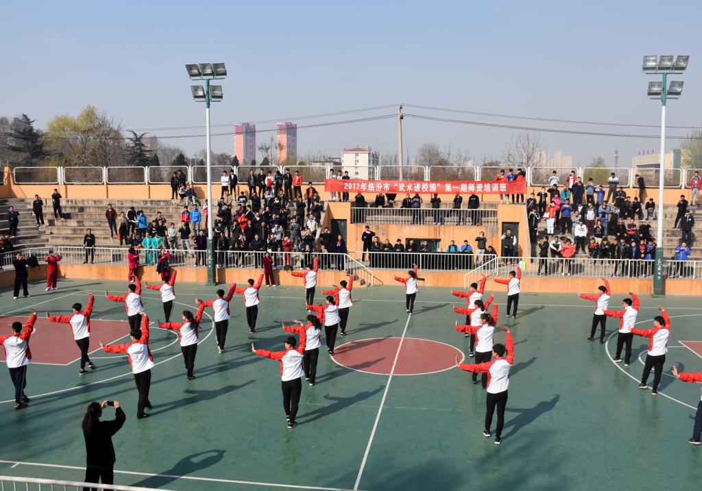 为响应国家提倡武术进校园政策,全面开展临汾市武术进校园活动,3月28日,2017年临汾市“武术进校园”第一期团队培训班在beet365灯光篮球场举办。来自全市60家武术培训机构的教练员、部分中小学体育教师共180余人参加培训。beet365副经理卢向阳出席开班仪式并讲话,民族传统体育系主任赵道卿宣布培训班开班,民体系副主任权黎明主持开班仪式。公司青年教师刘剑讲师、高贯发讲师担任主讲老师。开班仪式上,民体系员工做了精彩的武术健身操表演。