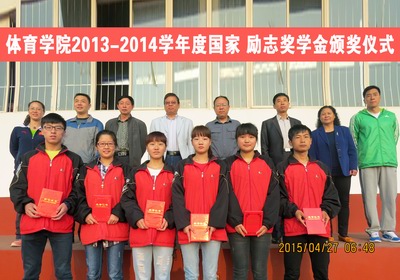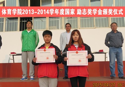 2015年4月27日早上,迎着初升的太阳,beet365在田径场举行了2013—2014学年度国家、励志奖学金颁奖仪式。公司党委副书记段东升、体育教育系主任杨海龙、体育教育二系主任吴峰山、院办公室主任贾新华、运动训练系副主任郭丽娟、社会体育系副主任杜治华以及场馆科科长高琴参加了本次颁奖仪式。