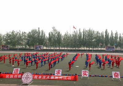 开幕式后,喧腾的舞狮表演拉开了团体操表演的序幕。铿锵有力、热闹非凡的锣鼓阵阵响起,十只雄狮在会场上翻腾起舞,带动了会场的欢腾。民族传统体育系带来的行云流水的太极扇表演《扇心武韵》,将扇子挥舞与太极拳的动作技巧灵活结合,彰显了华夏武术的魅力;体育教育二系带来的《舞动青春》团体操表演,以其活泼和时尚魅力的主格调,将老员工的青春活力充分展现出来,随后的裁判操,体现了更体育人公平、公正、公开的赛风赛纪;社会体育系的《放飞梦想》民族健身操表演,将广场舞元素与现代流行元素完美结合,将大众体育、养身健身、休闲娱乐与社会体育系的特色淋漓尽致的诠释出来;体育教育系带来的《畅想五环》团体操表演,动作整齐划一,精神抖擞,不停变换的菱形、三角、圆形、“U”形、五环等队形、异彩纷呈的花球操及公司健美操代表队带来的表演,展现体育教育系充满正能量的激情与活力;最后是由运动训练系带来的团体操表演《炫动激情》,创意十足的足球操及公司女足的姑娘们带来的足球基本功展示,高超娴熟的技术动作将公司女足不屈不挠、奋力进取的精神表现了出来,篮球运动员带来的灌篮、过人上篮等表演更是将运训学子的精神风貌表现的淋漓尽致。团体操表演为运动会营造了火热的氛围,在场师生沉浸其中,整个田径场变成了一片欢乐的海洋。