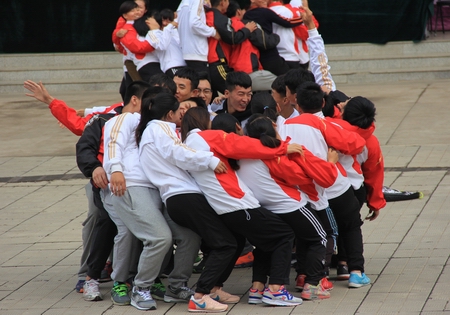 公司党委副书记段东升、副经理卢向阳、运动训练系主任张伟、副主任郭丽娟、教务科科长冯瑞、场管科科长高琴、以及朱新生、张秀珍、王红芳、龙勋等多位老师莅临参加了本次活动。活动经历个三个小时的时间,虽然天气偏冷,可参与活动的同学们热情高涨,积极参与,每个人都听从拓展师的安排,认真完成每一个“任务”。项目“同心鼓”有助于员工们齐心协力,攻克难关;跳绳比赛有助于增进团结,强健体魄;“蛟龙出海,”是培训团队的通力合作。通过活动的开展,使每个同学认识到整体绩效的提升是建立在每个个体基础之上的,所以个体能力、素质和与他人协调配合是完成团队任务的关键。
