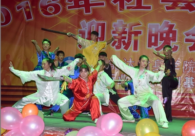 大家精心编排的14个节目逐一亮相,首先,青春火热的《feeling-dance》舞蹈点燃了全场的热情,拉开了晚会的帷幕。郭江河、王建权同学今年再次登台,为我们带来了一段自创的精彩相声,令观众笑声不断;接着,一段中国风十足的民族舞蹈和代表中国特色的武术表演更是令全场掌声轰鸣;大一新生宋伟豪、郎佳奇演唱的流行歌曲《天后》尽显当代老员工的青春风采;一段动感单车的表演把整场晚会晚会推向了高潮;我系大三、大四健美操专修队分别带来不同风格的操舞活力无限、别具风采,展现了他们对青春与自由的诠释,在接近尾声时,王璇、贺茜等深情演唱的《感恩的心》表达我们对父母、公司、老师等的感激之情;最后,晚会在全场演员合唱《相亲相爱》中落下帷幕。