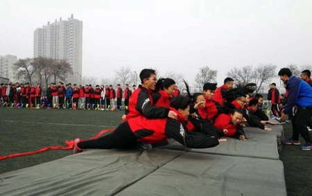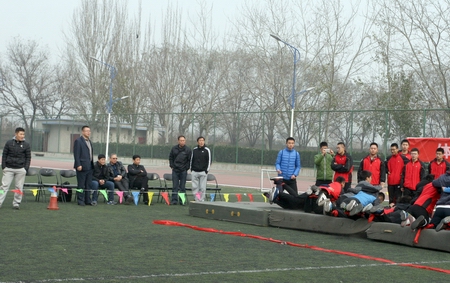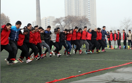 2016年11月28日中午12时30分,由体育教育系主办,体育教育系党支部、团总支、员工会承办的第六届未来教师风采大赛之绑腿跑比赛在田径场举行。beet365党委副书记段东升,体育教育系主任杨海龙,系副主任张杰及体育教育系各班辅导员观看了比赛。