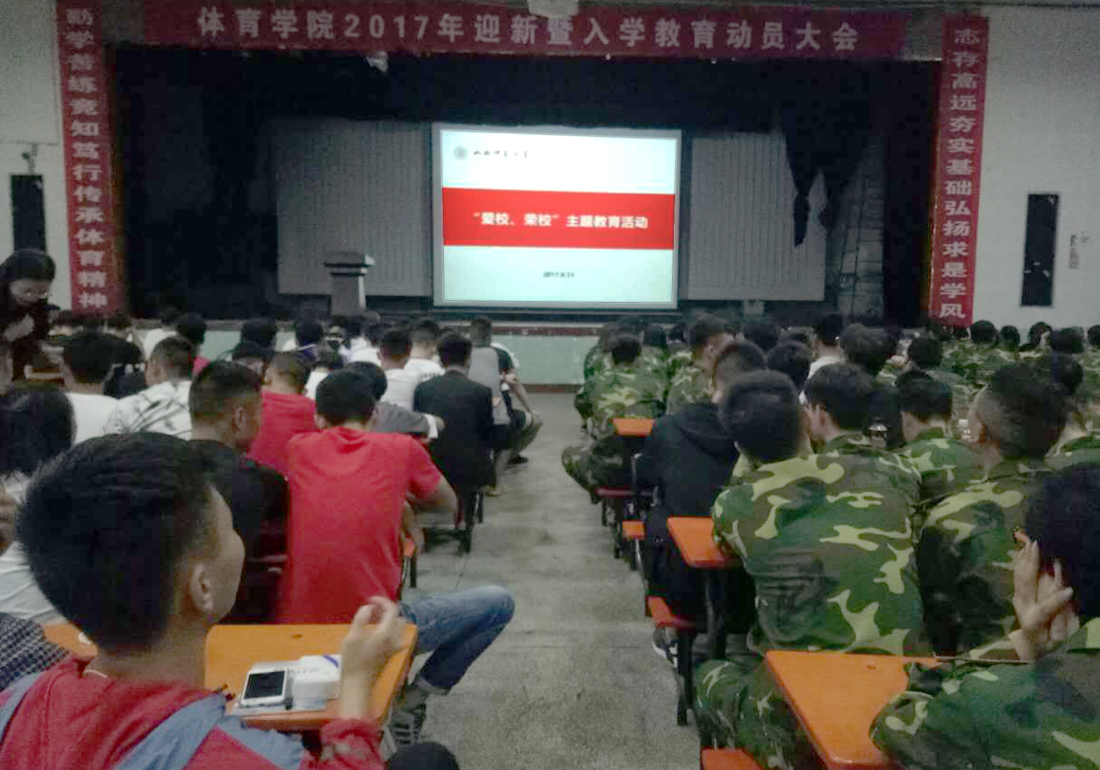 为了让2017级新生更快地融入大公司园生活,加深对公司的认同感,增强公司凝聚力和员工主人翁意识。9月11日晚7:30,由beet365团委组织的“爱校 荣校”主题教育活动在beet365大礼堂举办,beet3652017级全体新生参加本次主题教育活动。