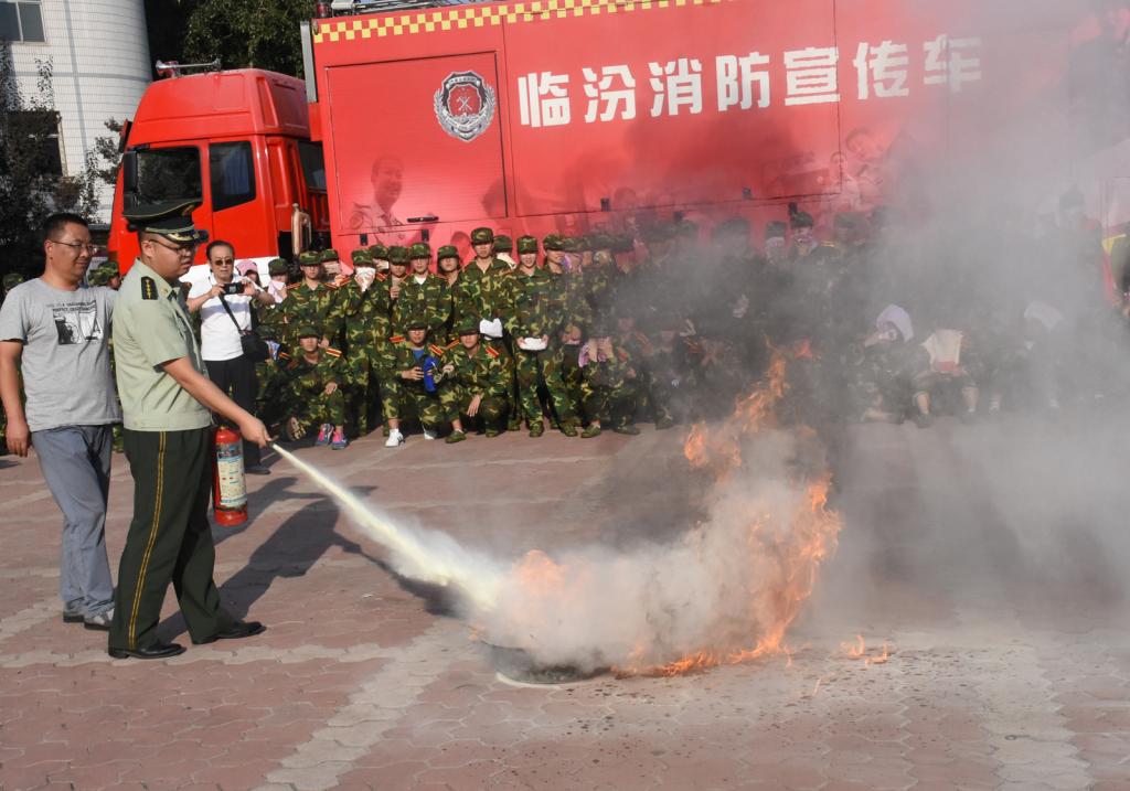 此后,消防官兵还向同学们普及了如何灭火,手提式灭火器如何使用,并让员工们亲自用灭火器灭火。