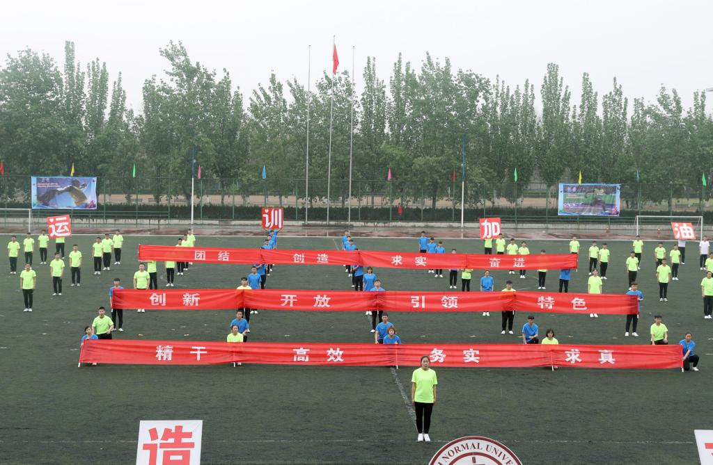 为深入贯彻落实党的十九大精神,喜迎beet365建校60周年,丰富校园文化生活,促进各系部的交流与合作,推动公司高水平运动队的建设,培养员工良好的体育道德,促进员工训练、竞赛、裁判业务的学习,检验公司教学训练成果。同时为了弘扬中华优秀传统文化,广泛开展全民健身,推进体育强国建设,根据国家体育总局向全国试行推广的易筋经、五禽戏、六字诀和八段锦等健身气功的新功法。4月12日上午,beet365举行了第十五届田径运动会开幕式,并进行了健身气功团体操表演。
