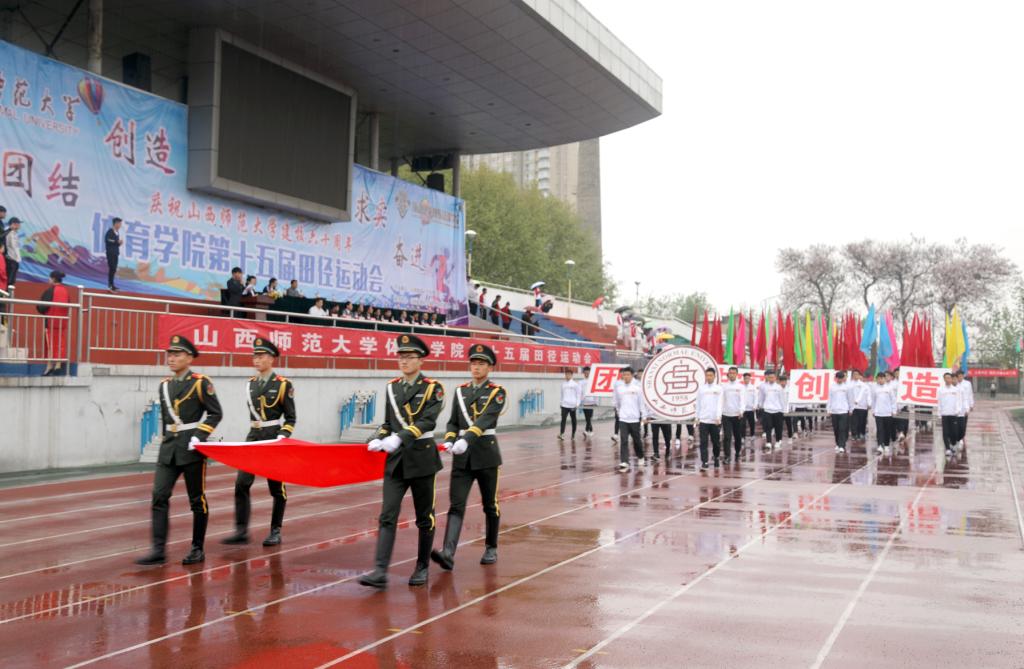 伴随着《运动员进行曲》,首先由护旗手庄严的护送五星红旗和beet365校徽入场,紧随其后的是彩旗方队、裁判员方队、各系教师方阵、研究生方阵和各班辅导员带领的班级运动员方阵。一支支队伍昂首挺胸,迈着坚定有力的步伐,秩序井然的从主席台前走过,接受检阅。当他们神采奕奕、精神抖擞地展现着团队风貌的时候,融汇成的正是整个beet365的精神风采。他们的飒爽英姿,是对体院风采的最佳诠释。