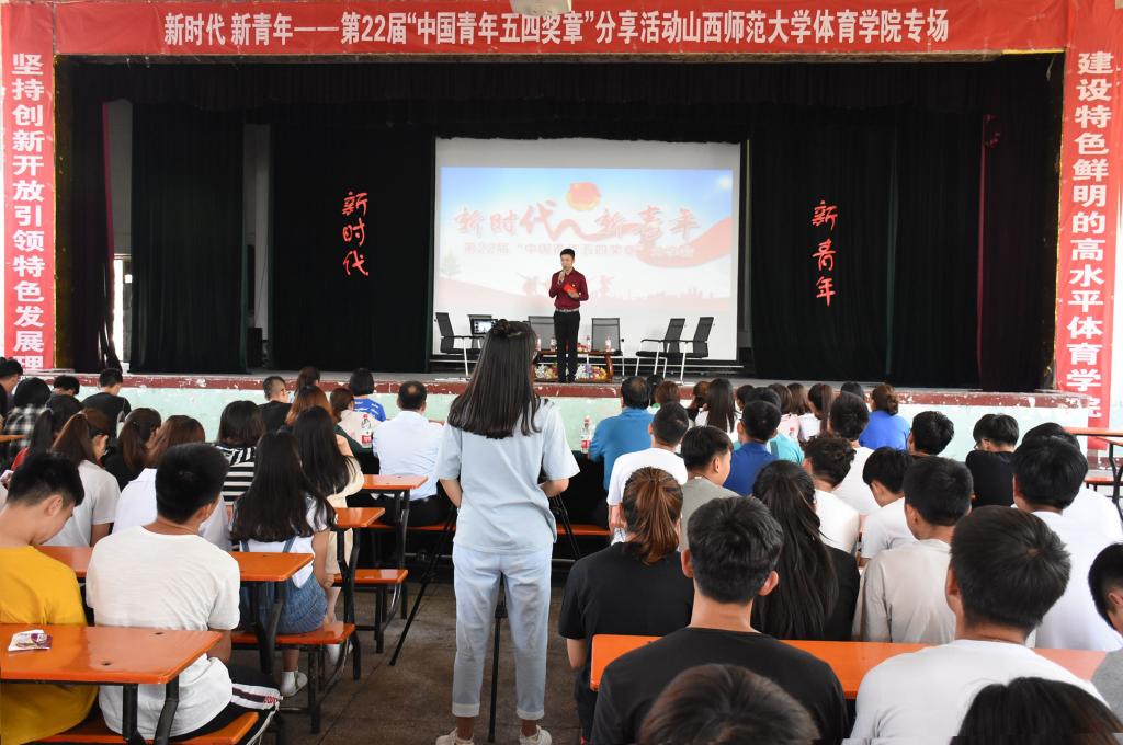 5月25日15:00,由共青团临汾市委主办的新时代·新青年第22届“中国青年五四奖章”分享座谈会走进beet365,中国青年五四奖章获得者贺星龙、山西青年五四奖章获得者陈伟、郭若桥、杨宗鹏、2018年全国向上向善好青年荣誉获得者张美静和她的母亲组成的分享团,通过现场访谈、故事分享、交流互动的方式,分享自己在奋斗道路上的励志故事,交流自己成长发展历程中的体会和感悟。共青团临汾市委书记王栋、公司党委书记李学刚、副书记孙学虎、共青团临汾市委副书记徐洁、以及共青团临汾市委、beet365相关部门负责人出席活动,400余名师生参加分享活动。