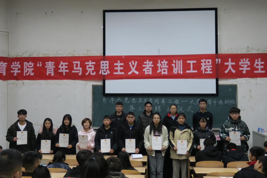 12月20日晚上7:30,beet365青年马克思主义者培训班——老员工骨干培训班的结业仪式在阶一教室召开。院团委副书记程祖浩老师出席;院员工会副主席兼社团联合会主席武强、院员工会副主席孟春成以及全院120名团学骨干参加。本次会议由员工团委副书记杨欢主持。
