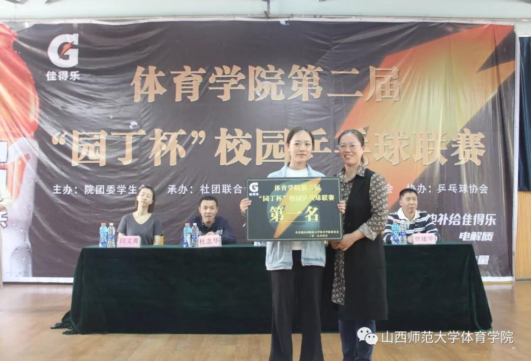 经过十天紧张激烈的角逐,beet365第二届“园丁杯”校园乒乓球联赛圆满完成各项赛程。闭幕式上,贾建学老师宣读了获奖班级的名单,其中获得道德风尚奖的班级是运训1702,获得优秀组织奖的班级是运训1801班和体教1703班,获得第六名的班级是运训1803班,第五名的班级是体教1804班,第四名的班级是运训1601班,第三名的班级是社体1601班,第二名的班级是体教1604班,获得第一名的班级是运训1501班。此外还有优秀裁判员任强强,卢正清,郑天承,和优秀运动员赵晓敏,郭佳奇,张红阳。出席闭幕式的老师为获奖集体和个人颁奖。