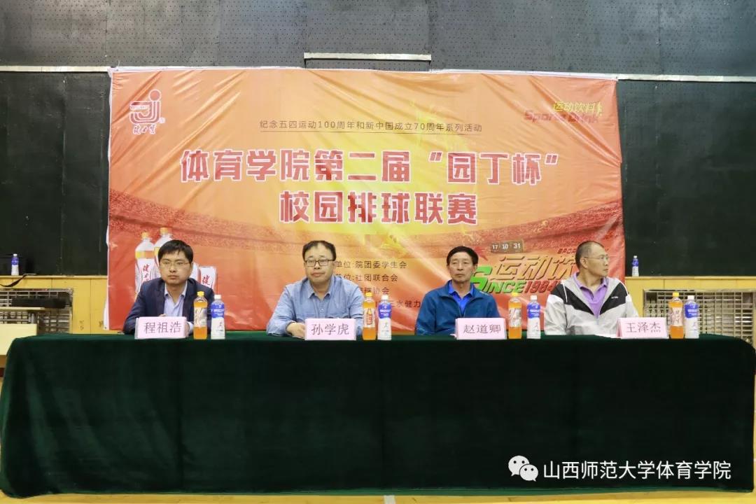 为纪念五四运动100周年和庆祝新中国成立70周年,丰富校园文化生活,宣传和推广排球运动,5月8日晚19:00,由院团委员工会主办、社团联合会承办、排球协会协办的beet365第二届“园丁杯”校园排球联赛开幕式在综合馆二层举行,公司党委副书记孙学虎、院工会主席、beet365女子排球队教练赵道卿、院团委副书记程祖浩、beet365男子排球队排教练王泽杰出席了开幕式,全体参赛运动员和裁判员300余人参加。