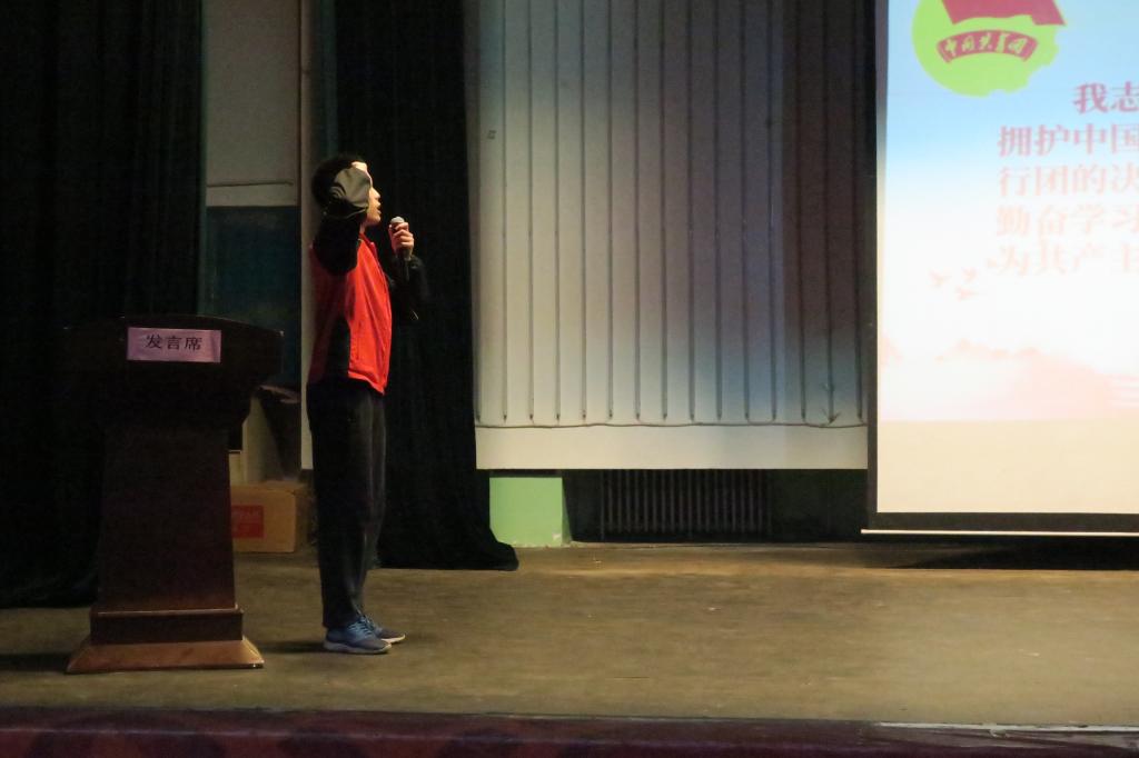 会议在庄严的国歌声中拉开序幕。首先,全体同学共同观看了中国共产主义青年团和党团关系的纪录片,加深了同学们对中国共产党与中国共青团的理解。