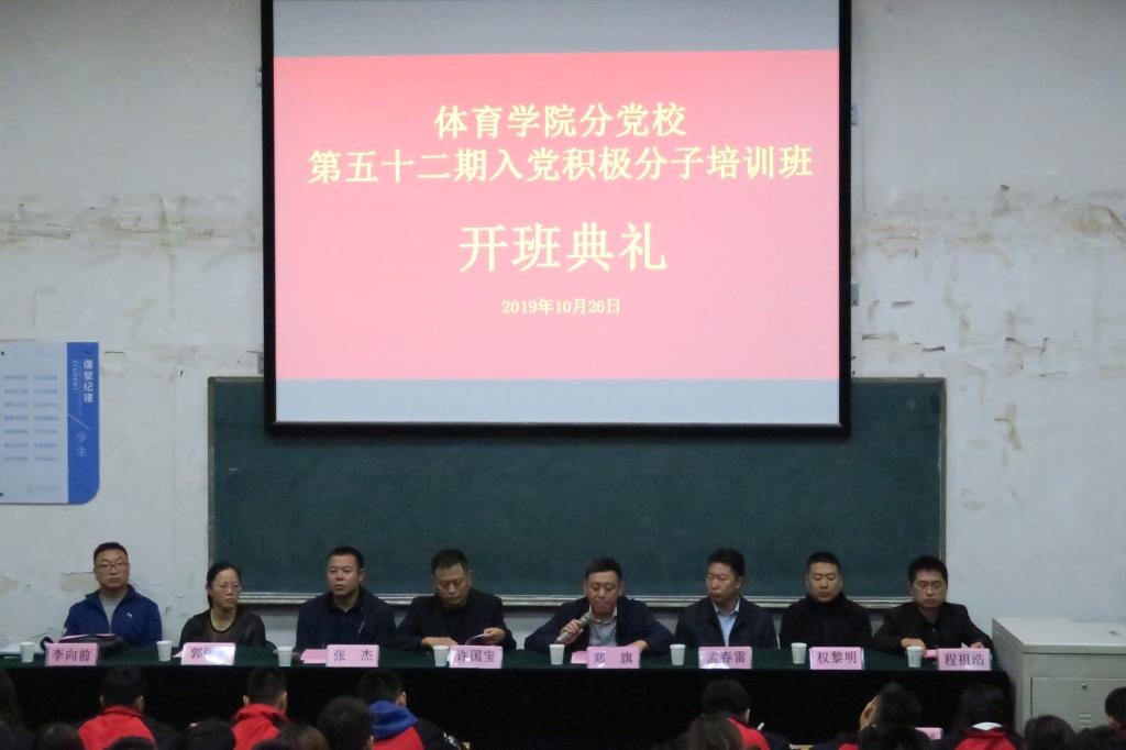 为深入开展“不忘初心、牢记使命”主题教育,10月26日晚19:00,beet365分党校在阶一教室举行第52期入党积极分子培训班开班典礼。公司党委书记、分党校董事长许国宝、公司党委委员、公司党委副书记、经理郑旗、公司党委委员、体育教育系党支部书记张杰和社会体育系党支部书记孟春雷、运动训练系党支部书记郭丽娟、民族传统体育系党支部书记权黎明、体育教育二系党支部书记李向前出席开班典礼,112名入党积极分子参加。开班典礼由院团委副书记程祖浩主持。