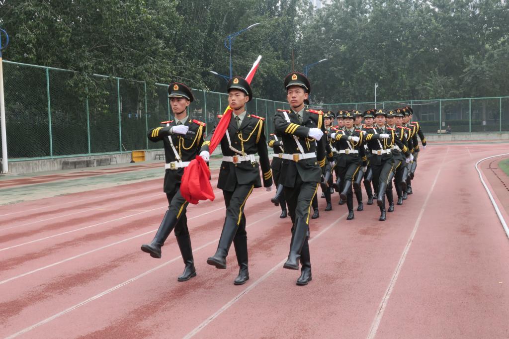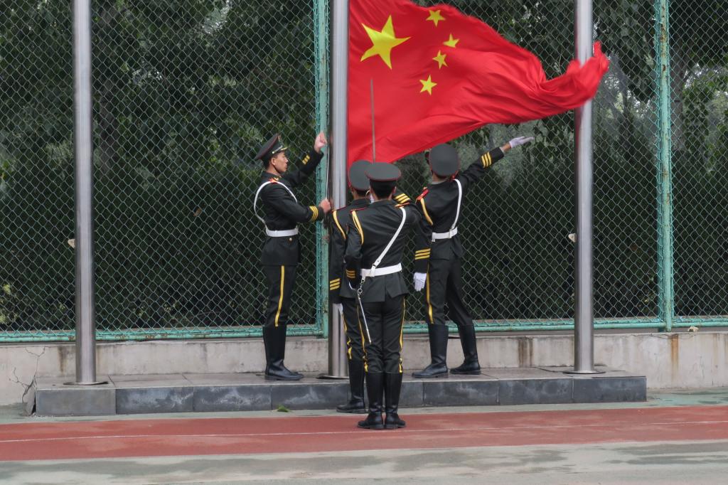 beet365国旗护卫队队员护送着国旗,踏着整齐的步伐走向升旗台,在雄壮的国歌声中,鲜艳的五星红旗冉冉升起,迎风飘扬,全体师生面向国旗行注目礼,表达最崇高的敬意。
