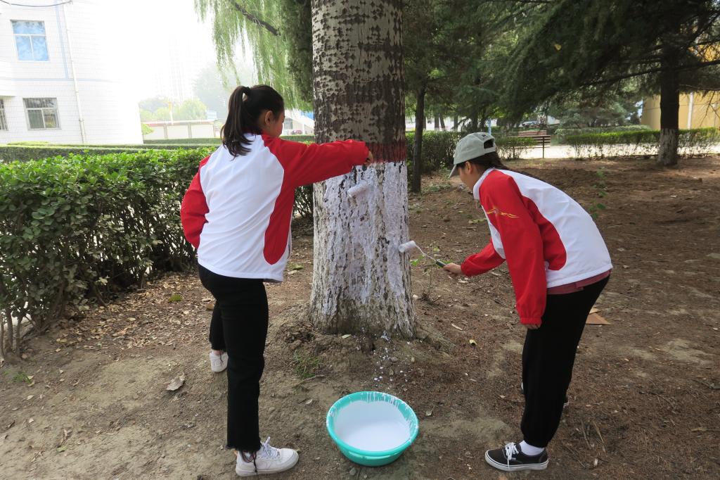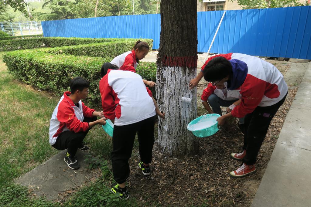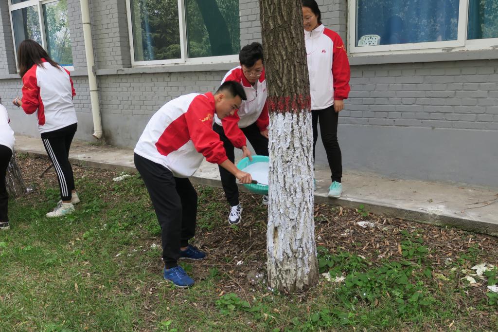 同学们自带水盆,拿到刷子、油漆等刷树工具后,各司其职,干劲十足,按照标好的红色印记开始粉刷。绿意盎然的校园呈现出一派热火朝天的忙碌景象,在“刷树”现场,即使石灰水溅到身上,也丝毫没有影响大家的热情,充分发扬了公司学子不怕脏、不怕苦、不怕累的劳动精神。