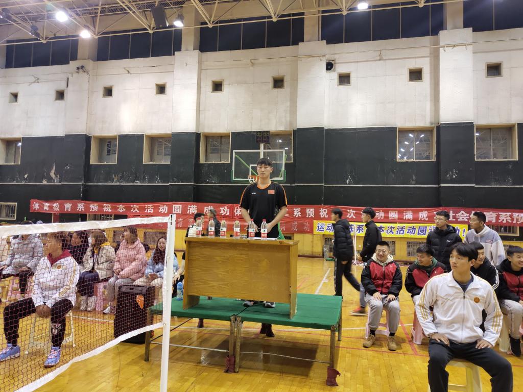 11月27日晚19:00,校园羽毛球联赛决赛在综合馆二层举行,副经理卢向阳、院团委副书记程祖浩、运动训练系副主任杜治华、体育教育二系副主任张学龙、大赛仲裁委员会总裁判长谢宏梅参加并为获奖集体和个人颁奖。进入决赛的两支代表队分别为文理1902班代表队和社体1801班代表队,比赛进行了男单、女单和混双三场,面对决赛场紧张激烈的氛围,双方选手稳扎稳打,不断根据场上形势改变战术,现场观众加油呐喊声此起彼伏,在第三次场混双的决胜局中,比分你追我赶,使得比赛氛围达到高潮,最终社体1801班选手一计漂亮扣球结束比赛,赢得了比赛胜利,夺得了2020年校园羽毛球联赛的冠军。文理1902班、运训1803班分别获得了亚军和季军,社会体育系、体育教育二系获得了优秀组织奖,体育教育系、运动训练系、民族传统体育系获得道德风尚奖,社体1801班郑颖等8名同学获得了优秀裁判称号,运训1803班张留安等8名同学获得了优秀运动员称号。