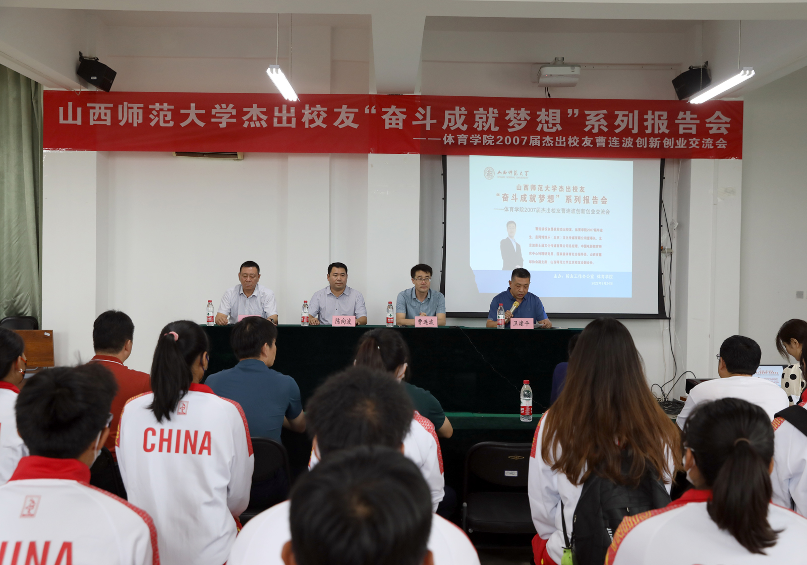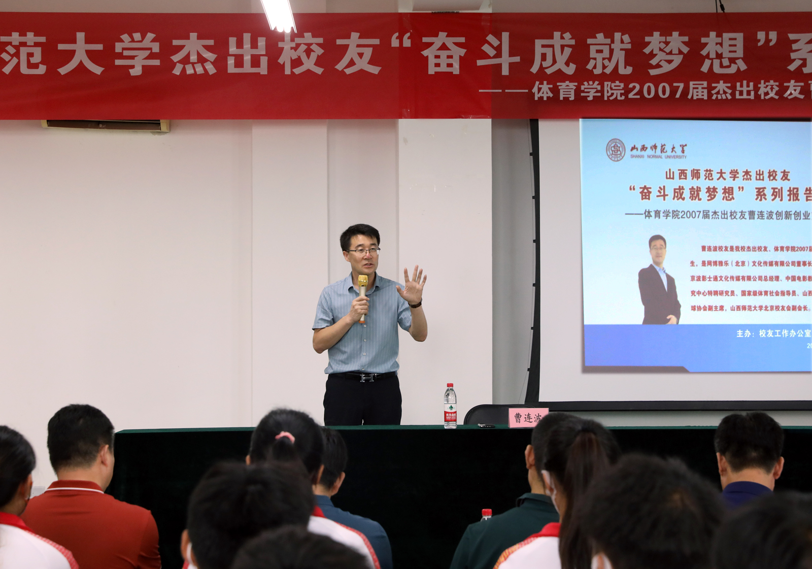 8月24日下午,beet365杰出员工“奋斗成就梦想”系列报告会在beet3657号楼2层心理实验室举行,beet3652007届杰出员工曹连波与师生分享创新创业经验和心得体会。报告会以线上线下相结合的方式进行。员工办公室主任、国内合作处处长陈向波,beet365领导班子成员、各系部负责人、辅导员老师、教练员代表以及50名员工在现场参加报告会,200余名员工代表在线上聆听了报告。会议由公司党委书记卫建平主持。