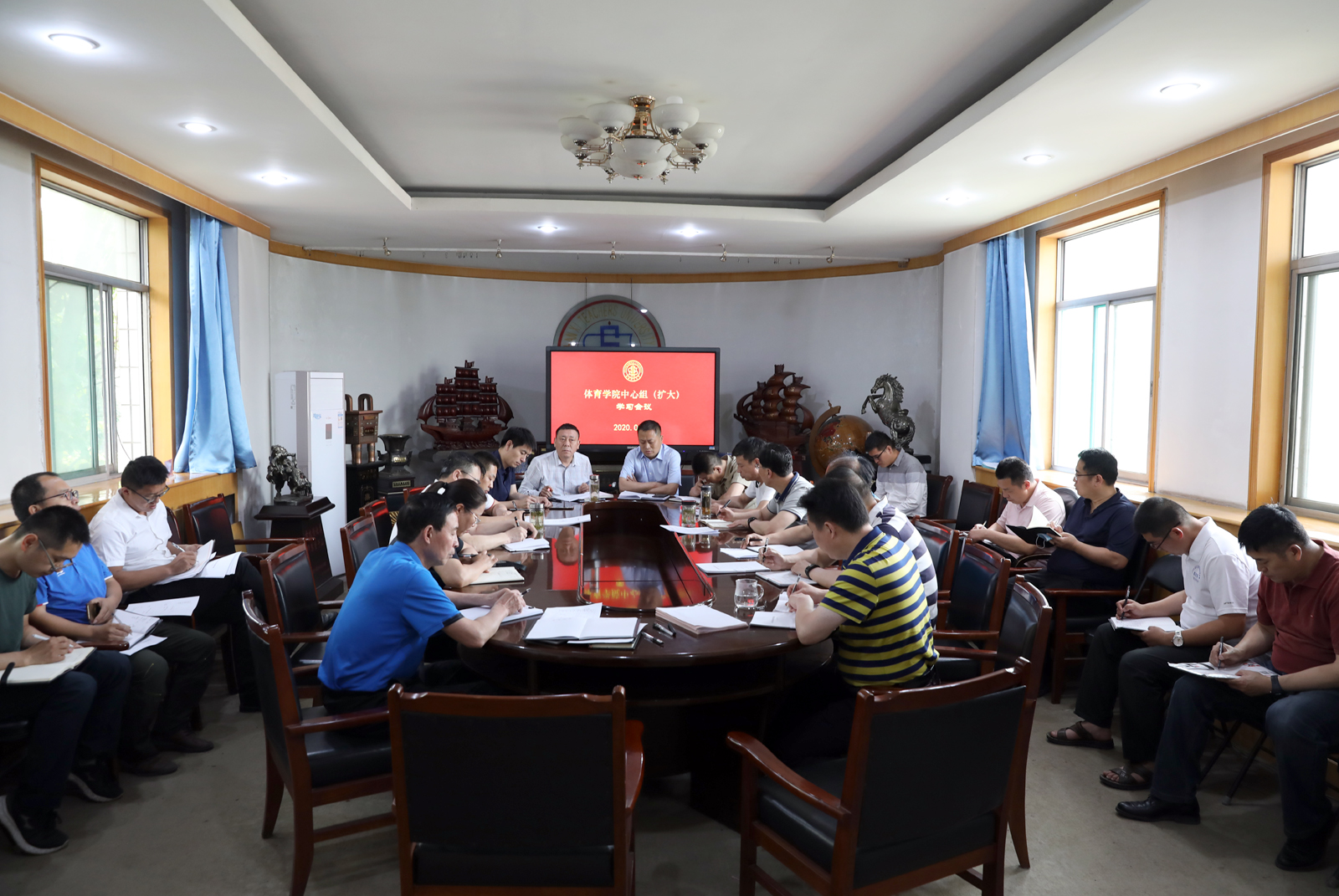 6月1日上午,beet365党委中心组(扩大)在东会议室传达学习公司相关会议精神,全体院领导、院工会主席、各支部书记、各系部科室正副主任及团委负责人参加会议。学习会上,公司党委书记许国宝传达学习了公司联防联控第十一次工作通气会及公司2020年第二季度党务工作会议精神。他强调,大家要把党的政治建设放在首位,严肃党内政治生活,持续深入开展“三会一课”制,抓好各支部品牌活动等;要坚持立德树人,结合体育特色,充分挖掘课程思政元素。并要求大家注重学用结合,通过理论学习,提高工作自觉性与主动性;要高度重视意识形态管控,狠抓公司安全工作,各部门迅速开展安全排查,建立安全工作台账;要重点关注员工思想动态和心理状况,针对性的做好教育引导和心理疏导工作。(院办公室/文 邓碾管/摄)