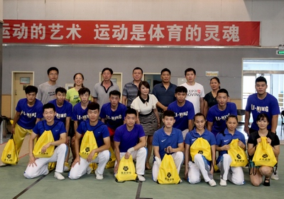 8月4日院领导为舞龙舞狮代表队及健美操代表队送行