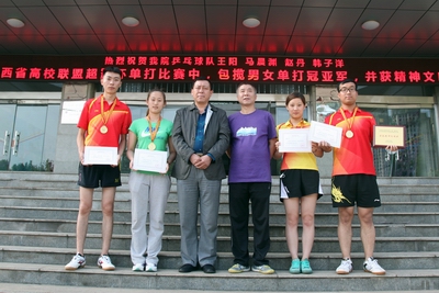 5月14日至15日,由山西省乒乓球协会、山西省高校乒乓球联盟主办的山西省第十三届“银河杯”暨山西省高校乒乓球联盟“超霸杯”单打赛在太原举行,比赛共有16支队伍参赛。beet365贾建学副教授担任乒乓球队主教练,派出王阳、马晨渊、赵丹、韩子洋、四名队员参加了男女单打比赛。经公司乒乓球队四名队员顽强拼搏,最终包揽了省高校乒联“超霸杯”赛男、女单打冠亚军,并获精神文明奖。表现了师大人良好体育精神风貌,再次为公司赢得了荣誉。(韩子洋/供稿)