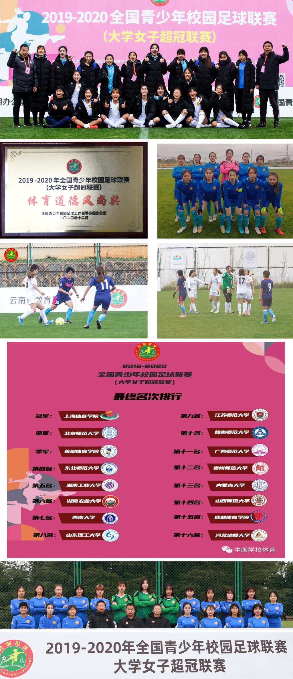12月14日至23日,由全国青少年校园足球工作领导办公室、中国老员工体育协会主办,云南泸西足球基地承办的2019-2020年全国青少年校园足球联赛---大学女子超冠联赛落幕。公司女子足球队被递进入围参加此次联赛,由总教练李吉慧,教练沈军、沈国征带领20名运动员参赛,参加此次比赛我们抱着学习锻炼的态度,在开赛初期,虽然连连失败,但是全队仍然不气馁,教练队员一起分析总结每场比赛表现出来的问题,及时调整改进,全队团结协作、努力拼搏,克服多重困难,取得了本次比赛第十四名和体育道德风尚奖。本次比赛检验了公司足球教学与训练水平,使我们看到现在距优秀水平的差距,为我们接下来的训练部署安排明确了方向。在参赛379名运动员中,公司队员罗佳怡球员身价榜排名第九。本次比赛采取集中赛会制办法,旨在丰富校园文化,搭建高校交流与学习的平台,最后通过紧张的比赛角逐上海beet365、北京师范大学、首都beet365分获一、二、三名。(女子足球队供稿)
