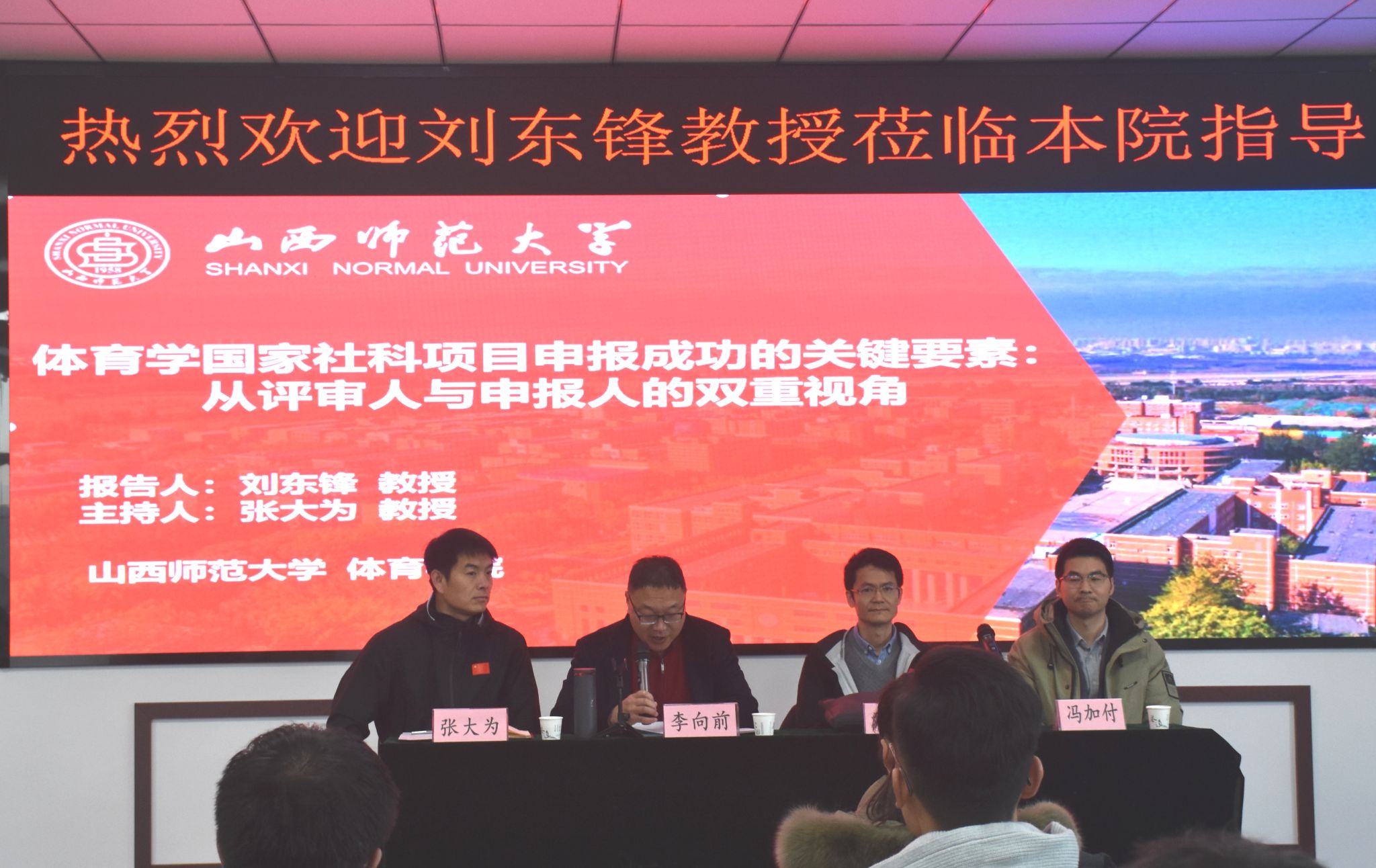 为积极落实公司“有组织科研”工作,提升公司学科高质量发展,服务教师2025年国家基金申报,12月14日上午,公司邀请上海体育大学刘东锋教授莅临做国家社科基金申报专题学术报告。刘东锋教授报告题目是“体育学国家社科项目申报的关键要素”。会议由张大为教授主持,公司近三年引进博士与40岁以下青年教师参会,申报教师准备好选题和论证依据,专家一对一指导,帮助教师提升选题科学性和申报书质量。